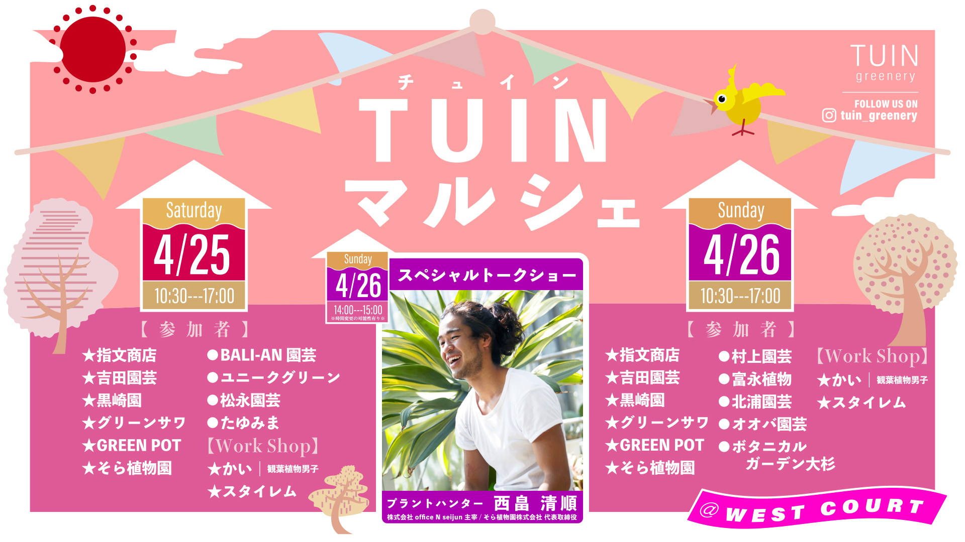 さらに、4月26日(日)14:00〜15:00には、TUINマルシェ スペシャルトークショーを実施。