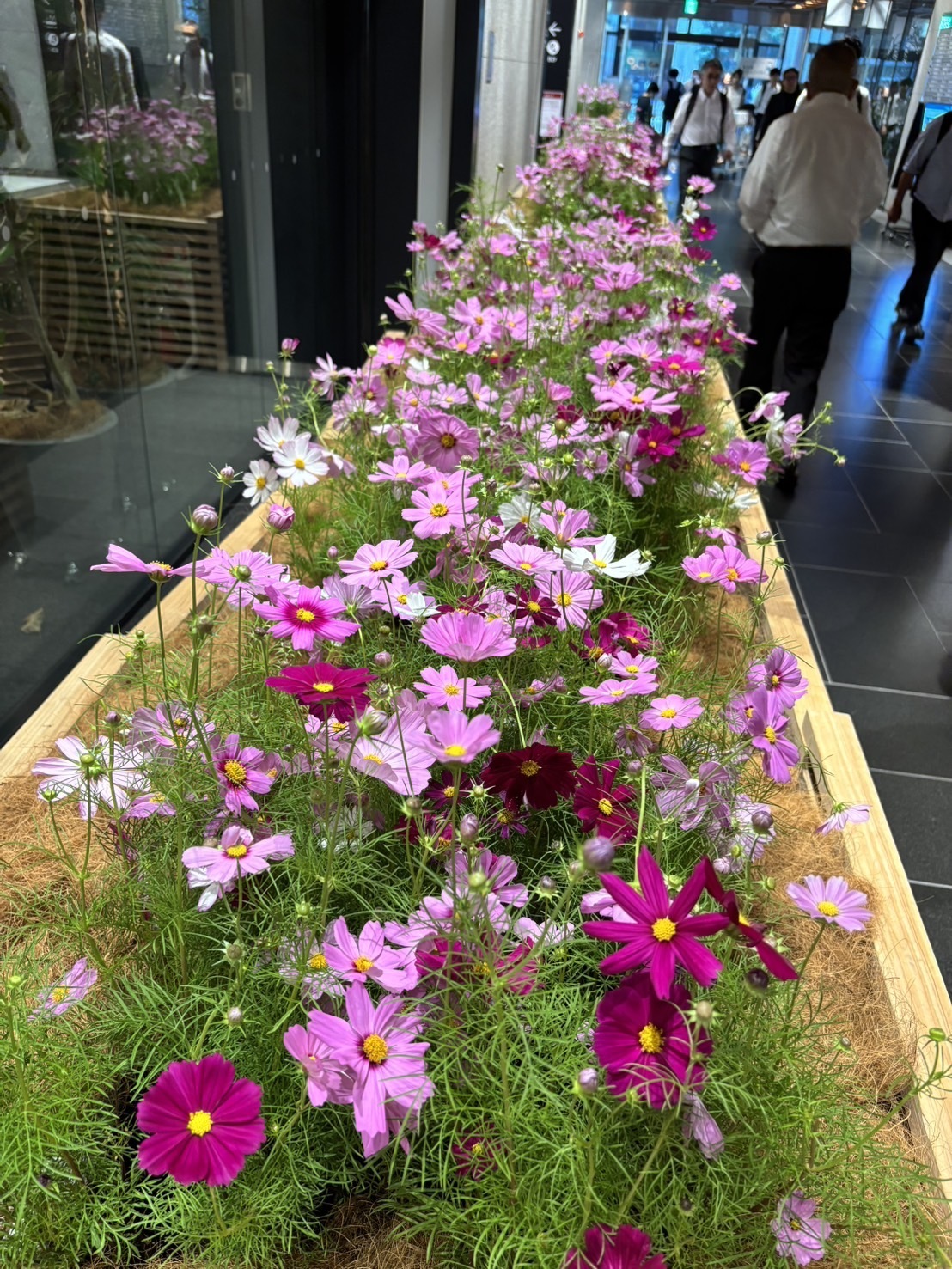 鮮やかなピンク色のコスモスが秋の訪れを感じさせてくれる、そんな空間になりました。