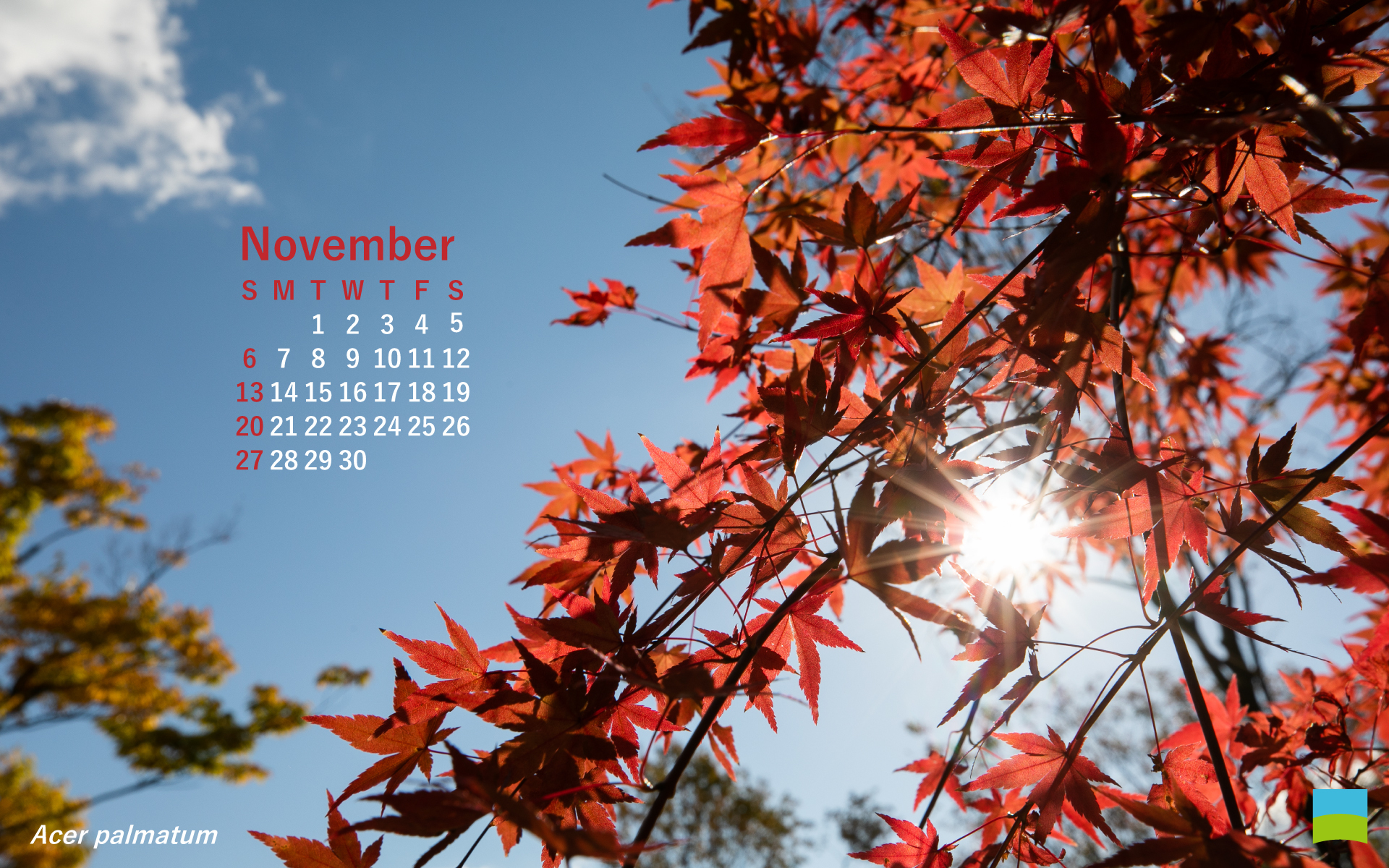 【PC用カレンダー壁紙 Wuxga】Acer palmatum【11月】